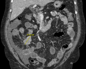 Several differentials like gastroenteritis, colitis & diverticulitis were considered. CECT abdomen/ pelvis in the ED revealed infiltrating small bowel carcinoid with desmoplastic mesenteric involvement.